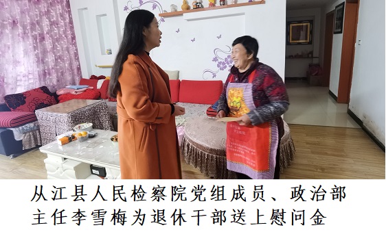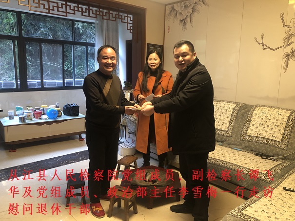 清风网讯(从江县人民检察院办公室:杨思妮)新春将至,岁寒情暖。1月27日,从江县人民检察院党组成员、副检察长谭飞华及党组成员、政治部主任李雪梅一行走访慰问退休干部,送去院党组的新春问候和对退休干部晚年生活的关心。