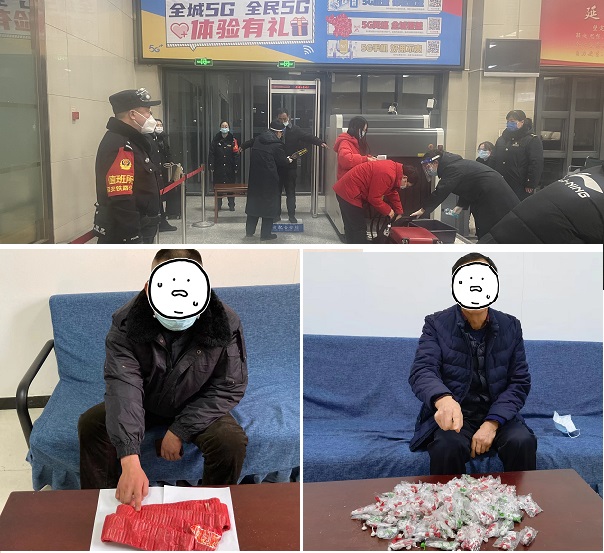 1月30日,延安人武某某购买了当日延安至子长的车票,准备回老家祭祖,为了省钱就带了自己之前购买的1000响鞭炮乘坐火车,被车站安检人员发现后移交延安站派出所做进一步调查处理。2月3日,延安人张某某,购买了延安至北京西的车票去看望孙子,为了哄孙子开心,在行李中偷偷夹带了4盒摔炮,共计108包1620响,被安检人员在二次安检过程中发现并移交至延安站派出所。