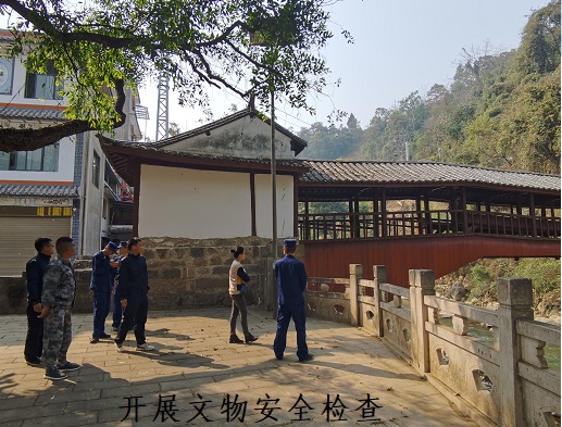 落实制度管理,完善文物保护长效机制。发挥制度管理优势,分别制订了消防、防洪应急预案,消防安全管理、文物保护、卫生保洁等工作制度。坚持防患于未然,联合派出所、规划所、安委办等部门每季度开展一次联合巡查,同时管理员定期开展文物安全巡查,确保文物安全。成立消防安全应急队伍,定期开展消防安全培训和演练。压实文物属地管理责任,与辖区内13个村签订文物安全责任书,全面落实文物安全直接公告公示制度,提高监管效率。