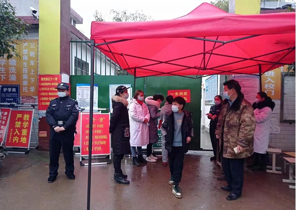 开学的第一天,各中小学校开学现场秩序井然,两千余名学生顺利回到阔别已久的校园。开学现场,可以看到交警指挥交通以保障道路顺利通行的身影,也可以看到卫生院工作人员指导现场做好疫情防控工作的身影。