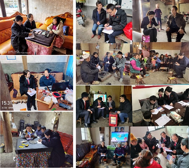 走访工作组每到一处,便向村“两委”了解村情民情,了解村“一中心一张网十联户”工作的开展情况以及“二维码电子门牌”安装情况,发放大走访《贵州法院“入村寨进社区走企业访群众”宣传手册》,张贴《大走访活动联系卡》,宣讲党的十九届六中全会精神、习近平法治思想、省委十二届十次全会精神,宣讲民法典、预防早婚早育、预防电信诈骗、未成年保护、防范非法集资等重要法律法规和安全防范知识等。在走访过程中,走访干警与群众亲切交谈,详细了解住户的家庭情况、生活情况,了解他们对法院和当地治安的认识和感受,倾听他们生活中遇到的困难和诉求,收集对政法信访工作的意见建议。走访干警认真填写走访登记表,并现场就群众提出的问题进行答疑解惑。