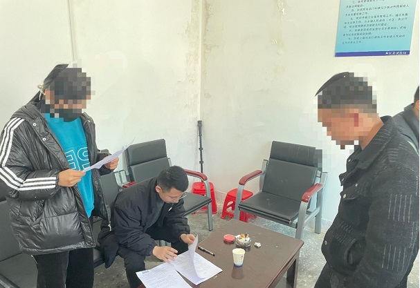 法庭干警到达现场后,向双方当事人了解案件经过,并对双方的相关约定进行再次确认后,引导当事人填写相关法律文书以及制作询问笔录等材料,于当日进行立案受理。在对双方协议内容的真实性、合法性进行审核后,依法予以确认,并将调解书发放给双方当事人。这是停洞法庭在当事人经基层调解组织诉前调解后出具的第一份“诉前调书”,本案的快调快结标志着我院诉源治理工作在基层深层扎根。