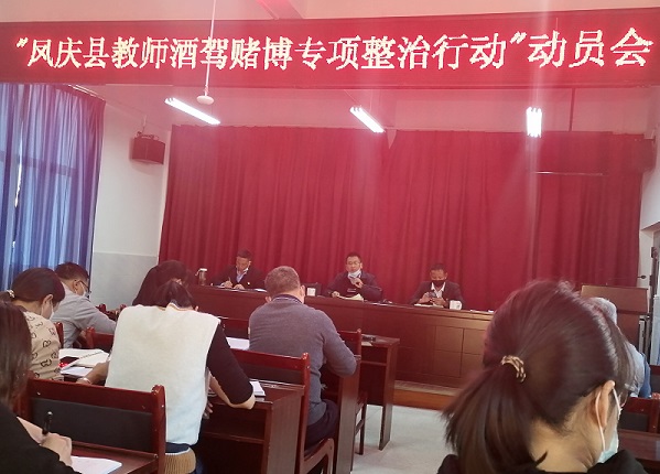 会议传达学习了《凤庆县教师酒驾赌博专项整治行动方案》、《凤庆县教育体育系统教师酒驾、无证驾驶、赌博、饮酒影响工作的处分办法(试行)》、《凤庆县教育体育局关于全面加强师德师风建设工作的实施意见》、《临沧市师德师风建设“十个严禁”及教师“十项承诺”承诺书》等相关文件精神,同时党支部书记、校长李国强对全校“教师酒驾赌博专项整治行动”进行了全面地动员部署。