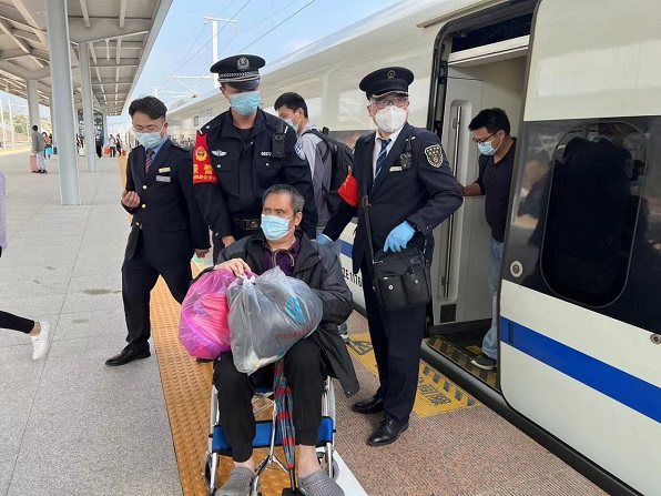 近日,在广州东开往吉安西的D1690次列车上,一名男子突发疾病无法行走,所幸被惠州铁路公安处乘警发现并及时救助,最终该名男子在乘警和列车工作人员的帮助下被送往医院救治。