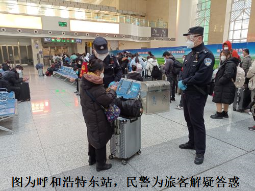 随着疫情防控形势不断向好,呼和浩特恢复开行多趟列车。近日,呼和浩特铁路公安处发布出行提示:请广大旅客预留足够的乘车时间,遵守疫情防控相关规定,遇到问题第一时间向民警和工作人员求助。