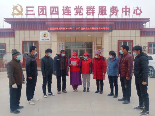 在开展12.4国家宪法日宣传活动中,四连“两委”、党员、新时代文明实践站志愿者向职工群众散发宣传资料,向大家讲解“12·4”国家宪法日的由来和《宪法》的相关知识,并通过列举发生在职工群众生活中的法律案例,增强职工群众的法制和法律意识,自觉学法、守法、用法,学会运用法律的武器来保护自身的合法权益。