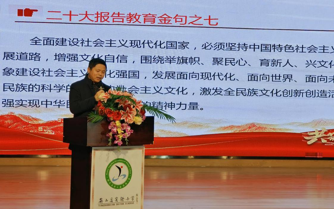 在领精神环节,由吕迎光书记组织全体教师学习党的二十大——教育篇。
