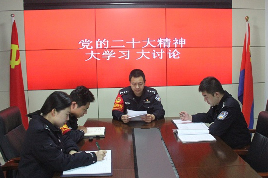 12月15日上午,锡林浩特铁路公安处商都车站派出所组织全体民警开展党的二十大精神“大学习、大讨论”。