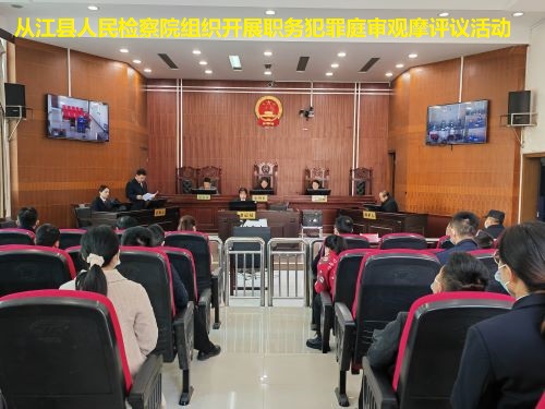 近年来,从江县人民检察院把庭审观摩评议作为主动接受监督、提升办案质量的重要手段,不断拓展对检察办案监督的渠道,确保检察权在阳光下运行。同时充分利用法庭教育开展法律宣传,把庭审观摩打造成普法教育的重要课堂,推动庭审警示教育活动常态化,实现三个效果的有机统一。