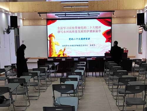 12月16日,湖南省永州市冷水滩区伊塘镇在镇孟公山村“伊家人•一家人”文化大礼堂举办乡村大讲堂第六期——党的二十大精神宣讲活动,该镇党委书记雷建军说群众关心的事,讲百姓听得懂的理,既讲党和国家的宏伟目标,又联系伊塘的山水民情,将“全面学习宣传贯彻党的二十大精神”大主题转化为“谱写永州高质量发展的伊塘新篇章”小切口,把“文件精神”化为“家常话语”,使党的二十大精神宣讲“活”起来、“热”起来、“沉”下去,深受在场干部群众的热烈欢迎。