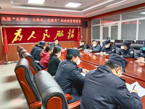 1月5日,第一师九团党委政法委召开会议部署开展“大学习、大练兵、大提升”活动,就做好当前和今后一个时期,特别是春节期间安全稳定工作进行动员部署。九团党委常委、人武部长、政法委书记李浩明出席会议并对活动进行安排部署。团党委政法委、派出所、司法所20余人参加会议。