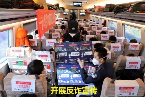 9日上午,在包头开往北京北的G2492次列车上,包头铁路公安处宣传小分队的民警通过发放宣传单、讲解宣传展板、开展互动问答等形式向旅客介绍警察节的由来和意义,与群众一同庆祝人民警察节的到来。同时,民警通过讲解反扒防盗知识、反电信诈骗技巧、动车禁烟等法律知识和铁路安全常识,为乘车旅客上了一堂别开生面的“出行安全”课,提高了旅客出行安全意识。