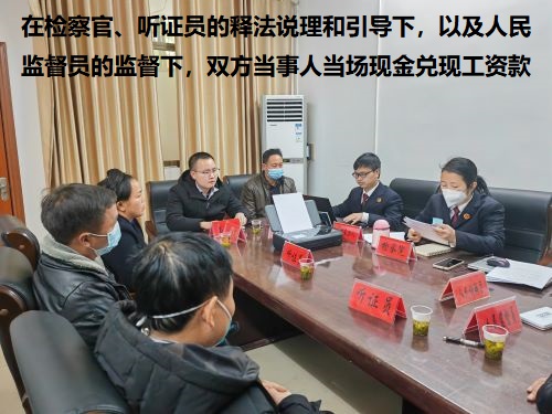 检察官通过审查,认为该案可以通过公开听证方式促成调解。1月18日,从江县检察院邀请听证员、人民监督员、人民调解员参与听证。会上听取了申请人和被申请人的意见,梳理了双方法律关系,在检察官、听证员的释法说理和引导下,以及人民监督员的监督下,双方当事人当场现金兑现8000元工资款,余款6500元在检察官和人民调解员的调解下,双方约定于2023年3月1日前付清并当场签订调解协议,当天向法院申请获得司法确认。