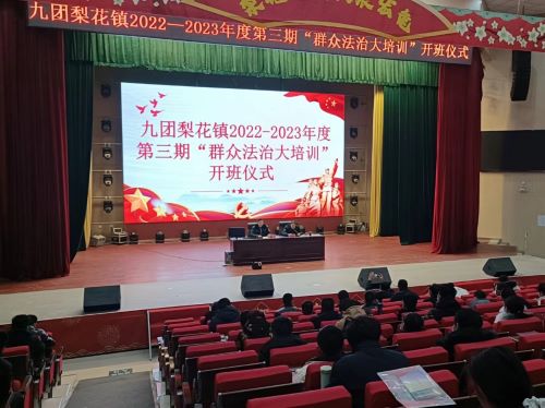 为深入学习宣传贯彻党的二十大精神和习近平法治思想,进一步培养职工群众法治意识,1月30日,新疆生产建设兵团第一师阿拉尔市九团司法所协助九团政法委开展第三期走读式群众法治大培训开班仪式。