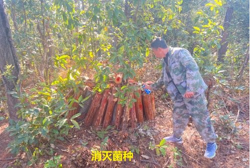 为有效打击遏制毁林种茯苓等破坏森林资源违法违规行为,保护好森林资源,维护好生态平衡。近日,平村乡组织林业站、护林员与综合执法队联合开展消灭不合法菌种培养,清除不合法堆积松木段、护林宣传等统一专项行动,对查出“毁林种植茯苓”行为进行清除并就地集中焚烧,同时对个别涉及林业违法图斑对象进行教育劝导,责令其抓紧对毁林地块进行补植复绿、恢复生态。