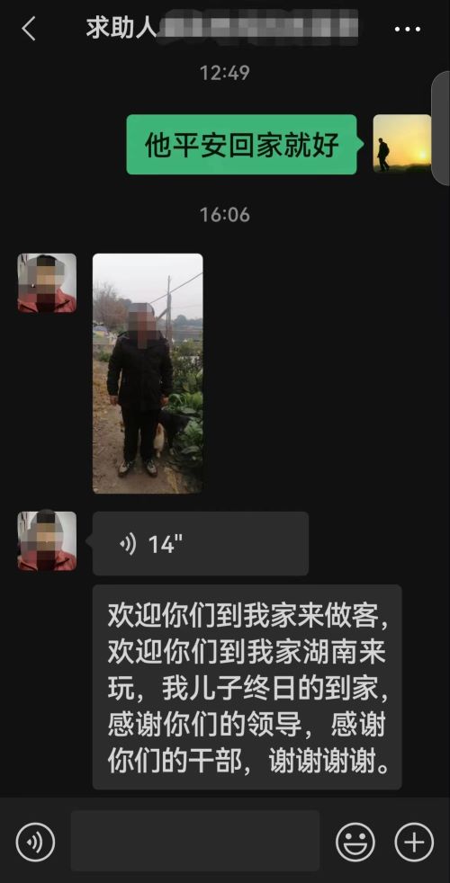 2月15日中午12时许,民警收到盛某妈妈的微信信息,称其已安全到家,并再次对民警的帮助表达了感谢。(通讯员:彭从寅、孙晓聪)