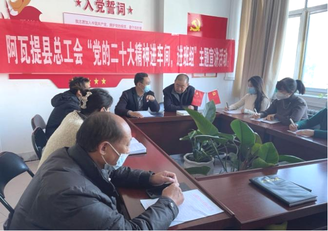 盛会凝聚人心,蓝图催人奋进。党的二十大闭幕后,阿瓦提县总工会以多种形式,认真领悟党的二十大提出的新思想新论断、作出的新部署新要求。结合工会工作实际制定落实举措,要求全体干部职工要学出新境界、打开新局面、扛起新使命,推动形成踔厉奋进、勇毅前行的干事创业氛围,坚定不移把二十大提出的目标任务落到实处。