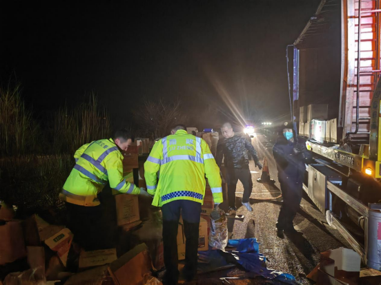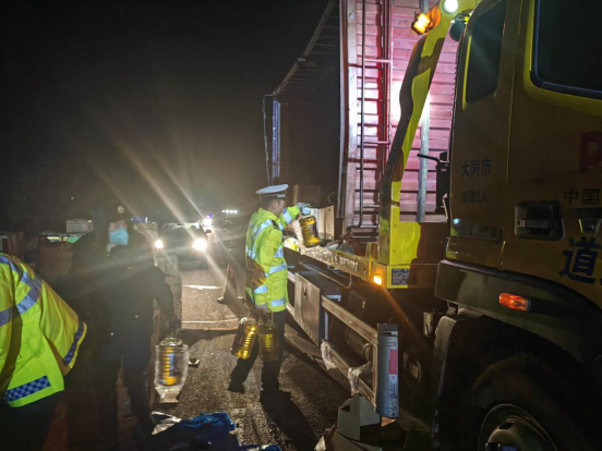 深夜数吨食用油洒落高速路 交警秒变“搬运工”助群众排忧解难