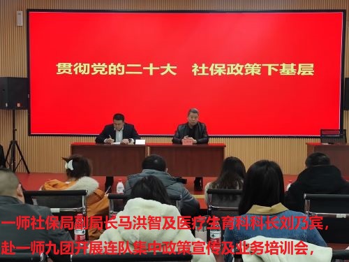 为了加强基层经办力量,3月18日,新疆生产建设兵团第一师社保局副局长马洪智及医疗生育科科长刘乃宾,赴一师九团开展连队集中政策宣传及业务培训会,九团社保所副所长秦丽陪同,10个连队的业务负责人参加培训。
