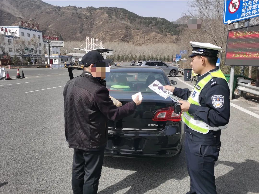 山西省高速五支队七大队民警在沧榆高速五台山景区收费站执勤时,一辆粘贴临时号牌的黑色轿车进入民警视线。