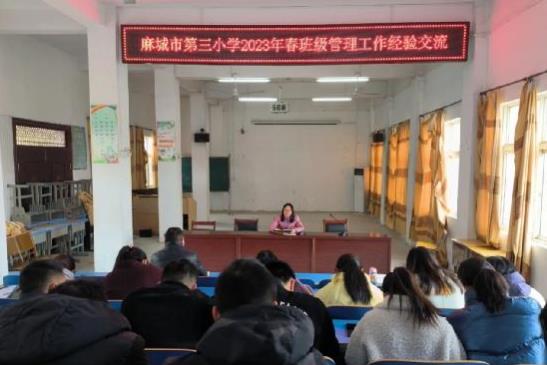 日前,麻城市第三小学组织全体班主任在阶梯教室开展班主任工作经验交流。