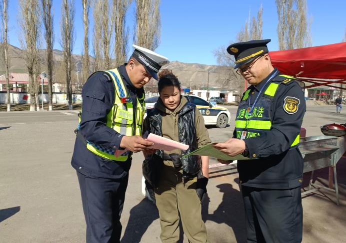 联合宣传,筑牢爱路护路意识。新源执法大队将教育与整治相结合,以“杏花节”大型旅游活动为契机,联合新源县公安交警大队在国道218线杏花谷路段,多层次、全方位宣传《道路交通安全法》《公路安全保护条例》等法律法规及公路环境卫生整治的重要性,并发放《爱路护路倡议书》,切实提高过往旅客和当地居民爱路护路意识。