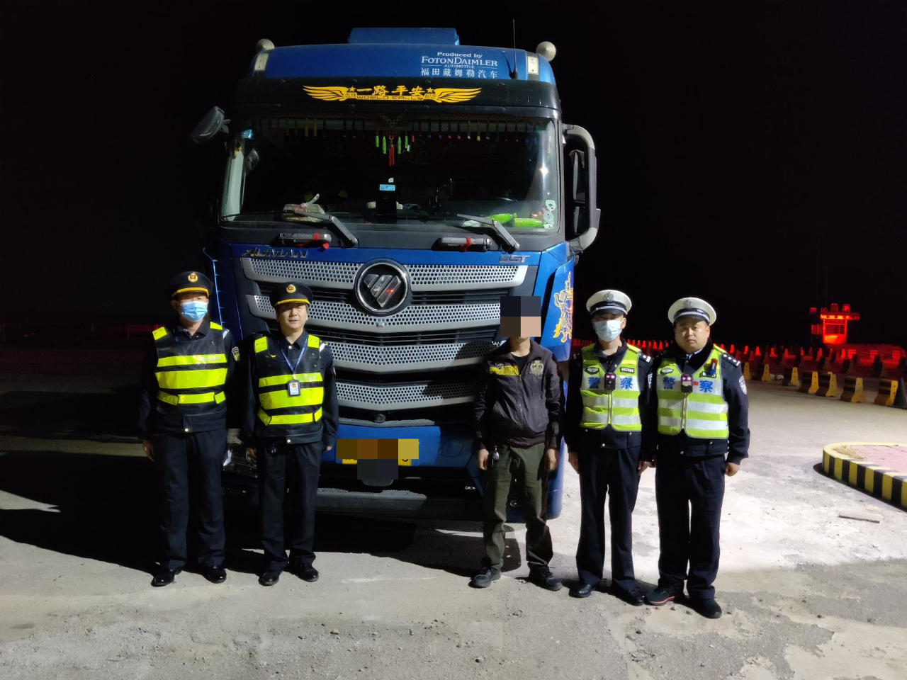 当日22时许,大队值班室接广灵收费站报警称,一辆重型半挂货车,没有经过入口处的超限检测站,直接强行闯卡驶入高速,疑似超载,去往河北方向。接警后,蕉山检查站执勤民警立即出警,在蕉山检查站设卡拦截,最终成功将该车查获。
