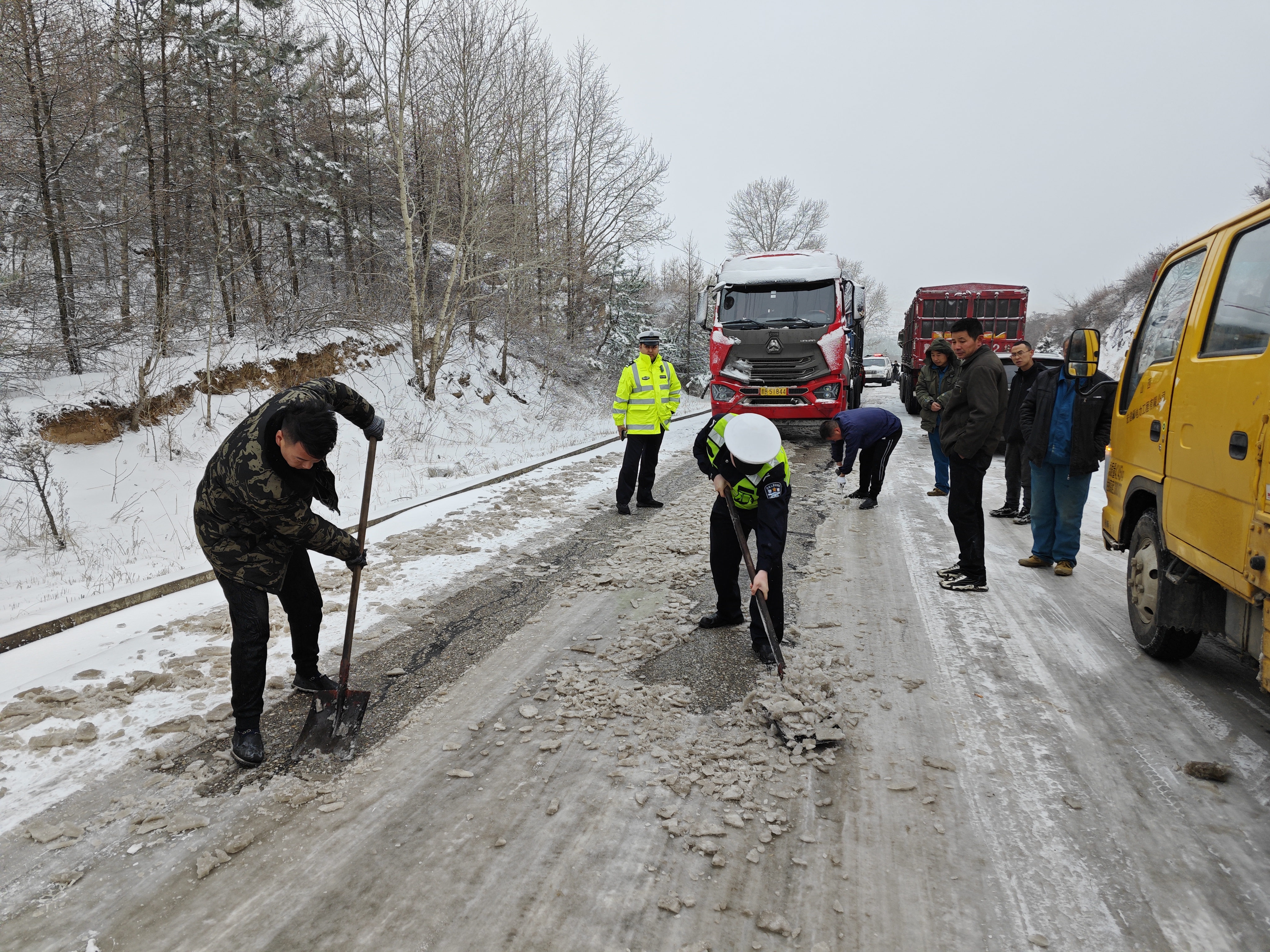 为保障广大群众平安出行,浑源县公安局交通管理大队结合辖区实际,迅速启动恶劣天气应急预案,在主要路段、重点路口科学布警,加强路面管控。全体执勤民辅警提前就位,坚守岗位,配合撒盐融冰雪、挥锹清理路面冰雪,做好疏堵保畅工作,指挥过往车辆安全通行,引导车辆有序停放,全力以赴应对雨、雪、风恶劣气候对道路通行的影响,全力为群众出行营造安全、有序、畅通的道路交通环境。