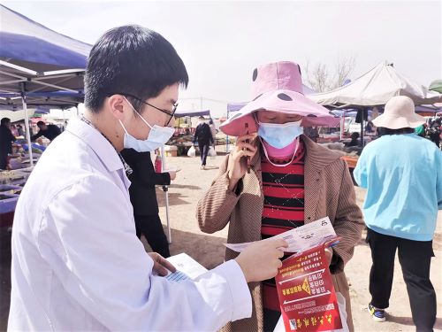 “请了解一下这些欺诈骗取医疗基金的行为,举报欺诈骗保行为还有奖呢!你们要守好自己的‘看病钱’。”4月19日,在新疆生产建设兵团第一师三团巴扎市场,三团医院负责医保工作的田卫国副主任把一张打击欺诈骗取医保基金的宣传画册递到一名群众手中道。