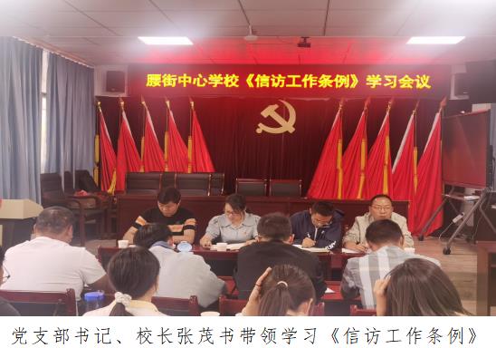 接到通知后,学校高度重视,立即召开专题会议,安排部署,成立了以党支部书记、校长任组长,其它行政办领导为副组长,各学校负责人班主任为成员的学习工作领导组,在学校例会上原文组织学习了《信访工作条例》的具体内容。