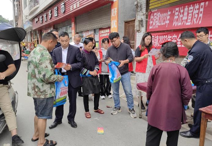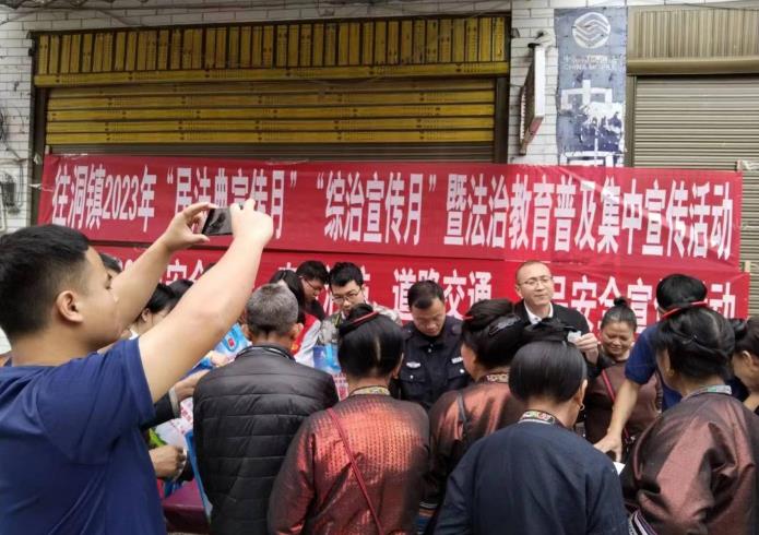 《民法典》是增进人民福祉,维护广大人民群众利益的法律武器,是与人民群众生活息息相关的生活百科全书。为深入贯彻落实“八五”普法的普法要求,持续做好民法典宣传工作,进一步提高广大村民法律素质,增强法治观念。从江县往洞镇人民政府以5月“《民法典》宣传月”为契机,组织司法所、派出所、综治中心、消防队等部门。于2023年5月25日利用当地赶集日,积极开展以法治宣传进万家“《民法典》宣传月·综治宣传月”为主题的法治教育宣传活动。
