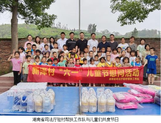 为切实关心基层儿童健康成长,进一步传递关爱儿童正能量,5月31日,湖南省司法厅驻村帮扶工作队在驻点新泽村所在小学开展了“六一”儿童节慰问活动,希望通过关心关注未成年人健康成长,让广大少年儿童切实感受到党和政府的关怀温暖,以法治护航未成年人健康成长。