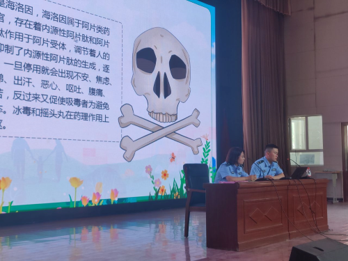 沙雅县公安局禁毒大队民警沈强从毒品的概念、危害、认识新型毒品、参与毒品斗争四个方面进行禁毒知识宣讲,并结合当前毒情形势和一个个鲜活涉毒案例,生动具体地向广大师生阐述了毒品的危害性,使“珍爱生命·远离毒品”的禁毒理念在广大青少年心中生根,为创建无毒校园打下坚实的基础。