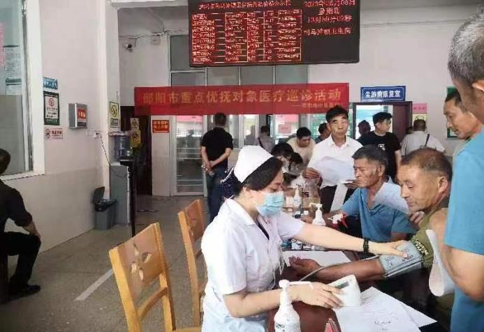 当天一大早,武冈市退役军人事务局租用两辆大巴车,前往大甸镇、司马冲镇接送重点优抚对象,前往司马冲镇卫生院。巡诊活动现场,前来参加医疗诊疗的优抚对象在志愿者的引导下,有序进行排队、登记,接受检查。活动中,医护人员认真为优抚对象测量血压、B超、心电图、血化验等健康检查,并详细询问他们的身体状况,耐心细致的分析病情,讲解注意事项,认真解答他们关于常见病、多发病的预防诊治疑难问题。