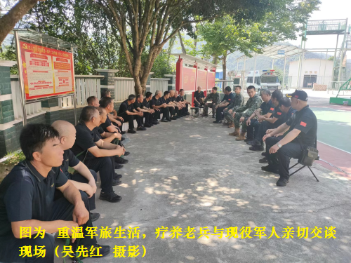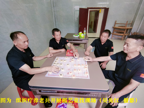 重温军旅生活和比追赶超。疗养期间,光荣院精心准备20余首军歌,在饭前、学习、活动前唱1首军歌,让他们回味军旅生活;组织到驻军营地参观体验、观看革命经典题材影片、讲述自己的军旅生涯,他们再次感受部队生活和共忆峥嵘岁月,激励他们继续保持军人良好作风,永葆军人本色和为社会经济发展贡献力量。同时,组织开展内勤事务和系列娱乐活动比赛,引导他们始终把“比、学、赶、帮、超”贯穿于生活之中,积极参与和美城乡“四大行动”,争做全面推进农村人居环境大提升,全力打造宜居宜业和美乡村的模范带头人。