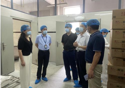 6月15日上午,黄冈市市场监督管理局局长江金文,食品安全协调科科长徐小明,到英山县第二幼儿园检查督办食品安全"两个责任"落实情况,英山县市场监督管理局总经济师方黎明,餐饮股长李南军等一行陪同。