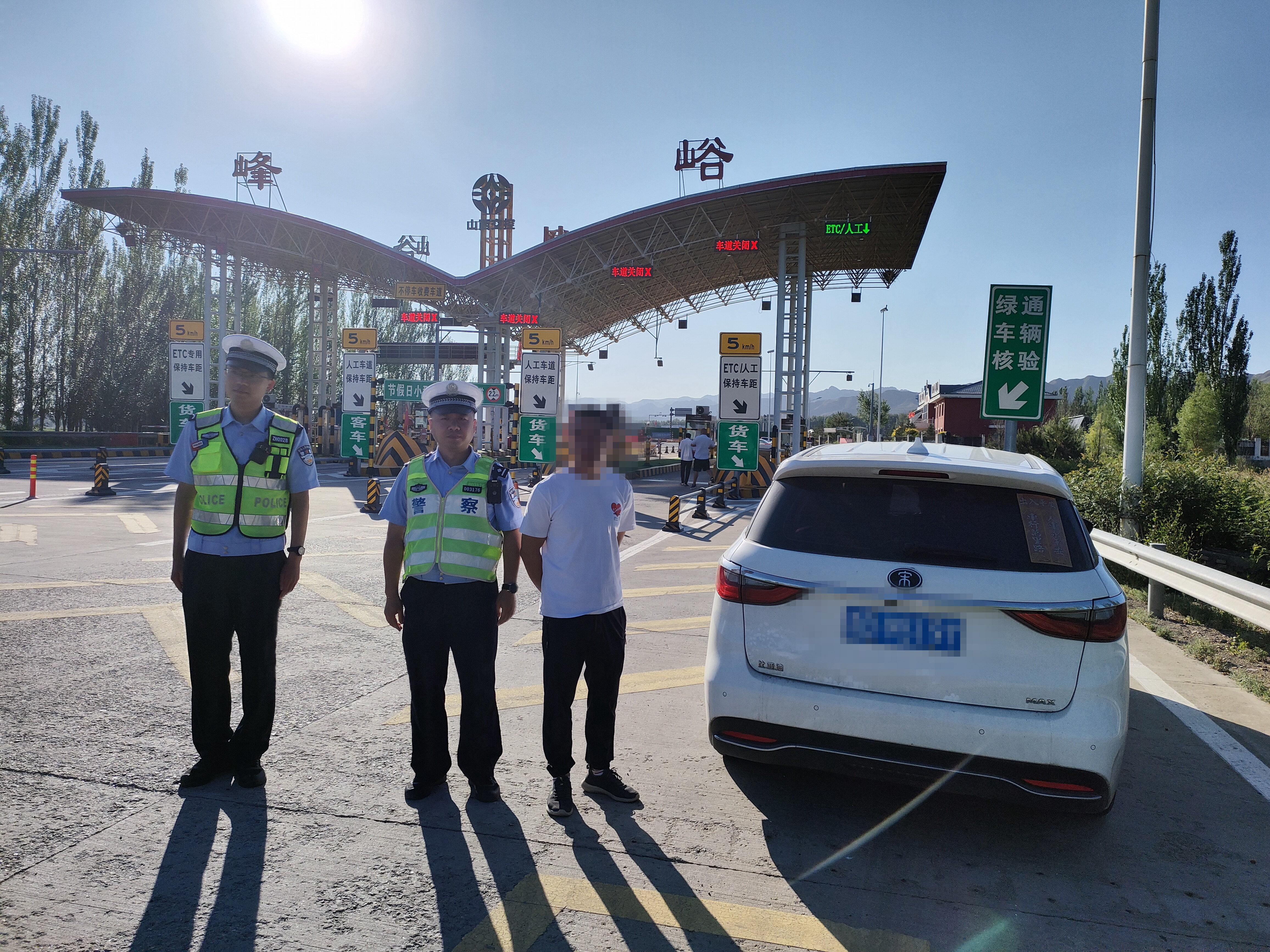 8时40分民警正在开展集中整治时发现一辆白色小型普通客车停在收费站内广场,随后民警示意其接受检查。