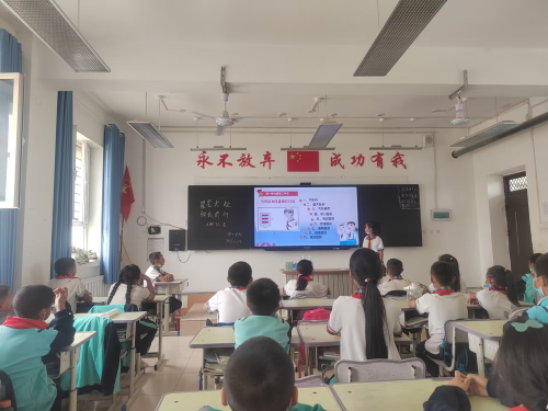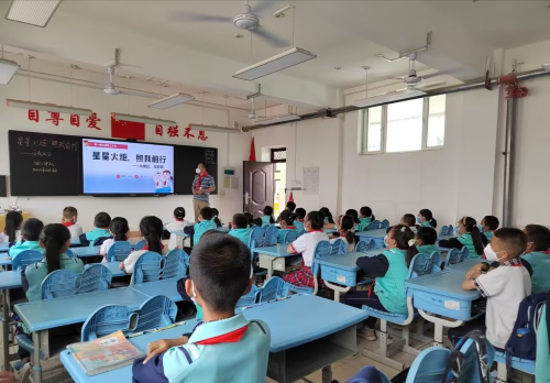 队会课上,中队辅导员老师向队员们讲述红领巾的由来,与队员们共同探讨星星火炬精神的深刻内涵,引导队员们赓续红色血脉,传承红色基因,立志成才报国。