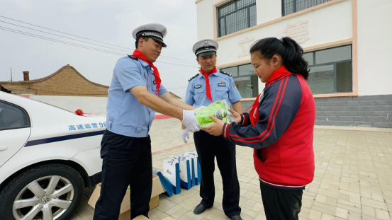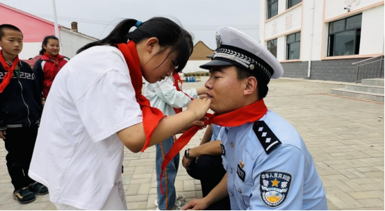 活动尾声,民警还为同学们派发了交通安全纪念品,孩子们纯真的脸庞洋溢起了灿烂的笑容,也纷纷为民警叔叔戴上了红领巾,并敬少先队队礼,表达了最崇高的敬意,民警与孩子们的微笑也定格在了合影中。