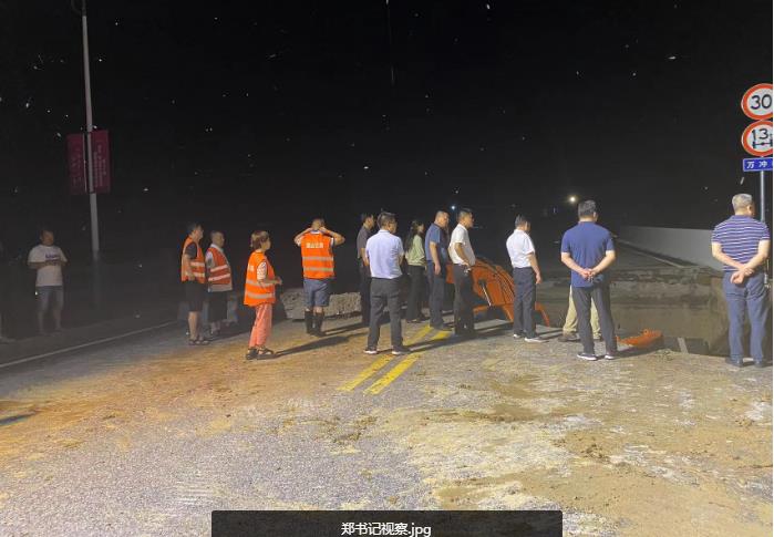 险情发生后,县委书记郑光文、县长王海霞、副县长陈琼等县主要领导与市公路事业发展中心副主任罗海东、县交运局局长冯矫正等交通部门负责人第一时间赶赴灾毁现场,指导调度应急抢险,调集铲车3台,挖机4台,吊车2台,自卸货车35辆,砂石料2000余方,雨布1000平方米,并迅速组织100余人的抢险救援队伍对道路进行临时管控,设置警戒线,封闭交通,放置警示标志牌、安全锥、水马。规划了两条线路引导群众绕行,疏散撤离群众50余人,全力保障人民群众生命财产安全。
