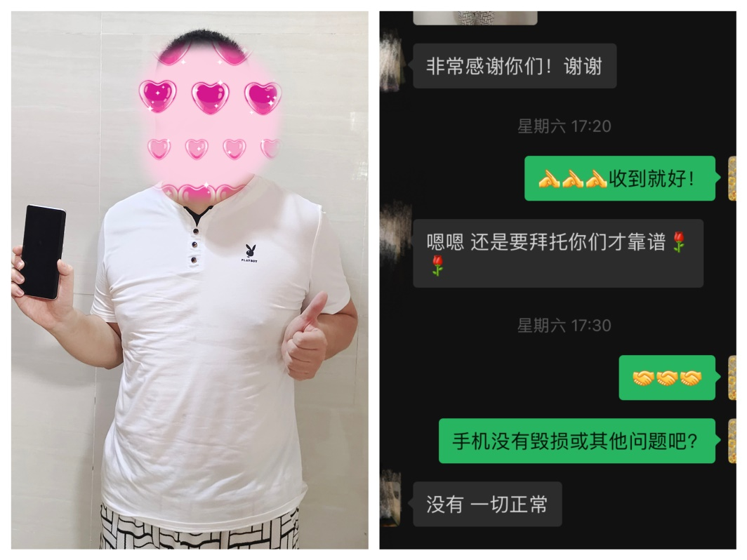 “手机拿到了。非常感谢你们!谢谢!”。7月15月下午,在惠铁警方的努力下,旅客朱先生的手机几经周折终于回到了自己的手上,心情激动的他给民警发来信息,表示感谢。