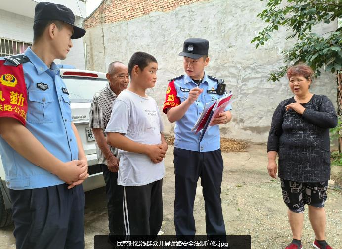二、加强法律宣传,提升人民群众法制观念。蒲城所组建“铁路安全宣传”小分队,深入沿线客运车站、村庄、废品收购站、大牲畜养殖户等地方,向广大人民群众讲解《中华人民共和国治安管理处罚法》和《铁路安全管理条例》等相关法律法规以及近年来危及铁路运输安全的警示案例,通过民警现场说法、发放宣传资料和签订安全责任告知书等形式,有效提升了人民群众的法制观念,营造了良好的铁路宣传氛围。