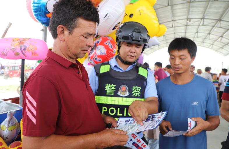 7月23日上午,沙雅县公安局海楼派出所民警走进畜牧交易市场开展反诈普法宣传活动,让群众在巴扎日购物之余,“零距离”享受普法宣传和法律咨询服务,为群众筑牢安全防护墙,打通普法用法“最后一公里”。