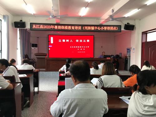 为贯彻落实党的二十大精神,进一步加强中小学教师队伍建设,不断提升学校教育教学水平,努力打造一支教育教学理念新、业务水平高的教师队伍。2023年7月24日至27日,从江县丙妹镇中心小学组织全镇小学教师开展为期4天暑期继续教育培训学习活动。
