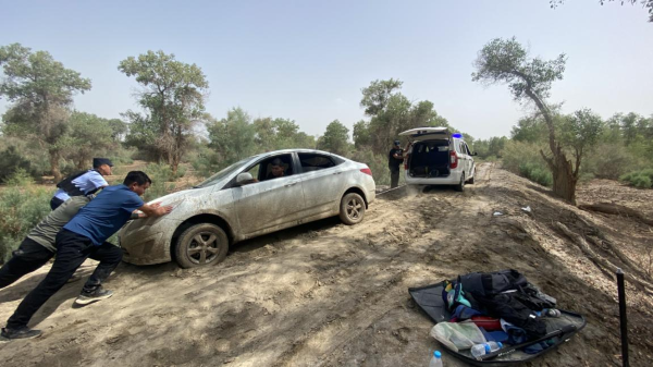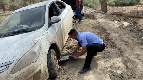 “终于碰到路过的人了!我们已经好久没喝到水了。”8月1日下午,沙雅县公安局塔里木派出所民警欧力国在巡逻时发现一辆白色小轿车掉在路基下面被困,民警见状立即上前查看并帮忙。