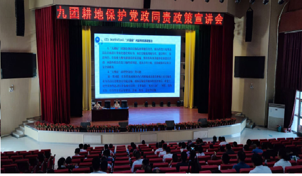 8月4日,新疆生产建设兵团第一师阿拉尔市九团召开耕地保护党政同责政策解读培训会,会议邀请师市自然资源和规划局党组成员、执法大队大队长庞玉梅同志,为全团各业务部门、各连队主要负责同志、业务骨干上了一堂耕地保护政策及党政同责政策课,夯实了团镇基层耕地保护基础。会议由九团党委常委、副团长杨玉萍主持,全团各业务部门、各连队负责同志、业务骨干等共73人参加培训。