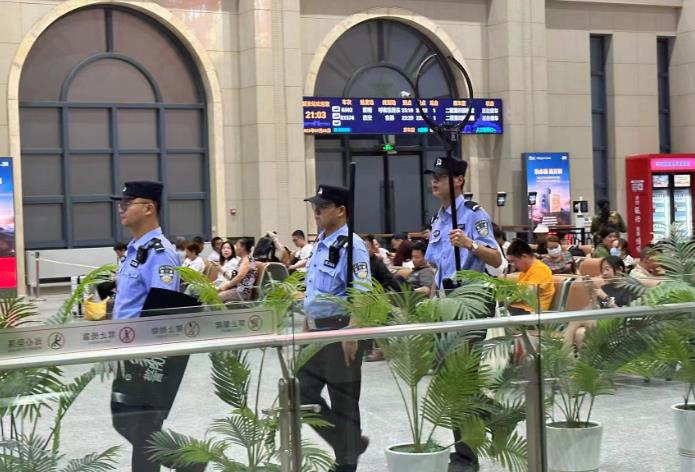 铁路民警温馨提示:暑假期间,出行旅客众多,请广大群众提前进站安检,看好行李物品,确保出行安全。(通讯员:陈佳佳)