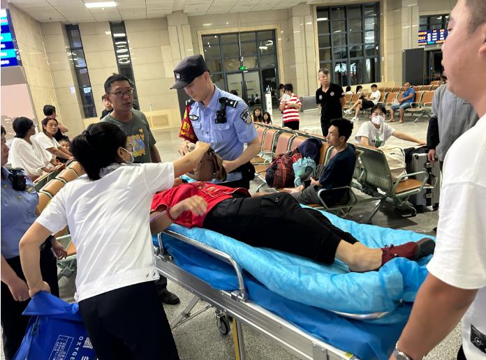 7月26日0时许,民警刘俊东在候车室巡逻时发现一名旅客在座位蜷缩着、面部表情十分痛苦,他立刻上前查看。经询问,该旅客称自己突发腰痛不能动弹,在求助现场医护人员依然无法缓解后,刘俊东立刻拨打120急救电话,将该旅客送往医院紧急就医。事后,该旅客专程打电话进行感谢。