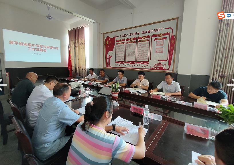 为进一步推进教育均衡发展,落实黔东南州教育局2023年选派教师工作见面会会议精神,推进基础教育优质资源共建共享,实现教育教学高质量发展,8月9日下午,黄平县湖里中学党支部书记李延平、校长雷邦成、分管教学副校长周西媛、选派教师胡春元、王泽春、吴国华一行六人到从江县宰便中学参加了两校“组团式”帮扶工作部署会,会议由从江县宰便中学校长秦江明主持。