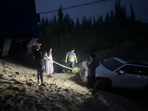 “人有没有事?”民警问。“人不要紧,车怕是不太好了。”群众回答说。阿克苏沙雅县一名女子8月17日晚上在盖孜库木乡一村道上驾车不慎冲下较陡路坎,横在沟里,周围一片漆黑。盖孜库木派出所值班民警接群众报警后立即展开对受困女驾驶员的救助。